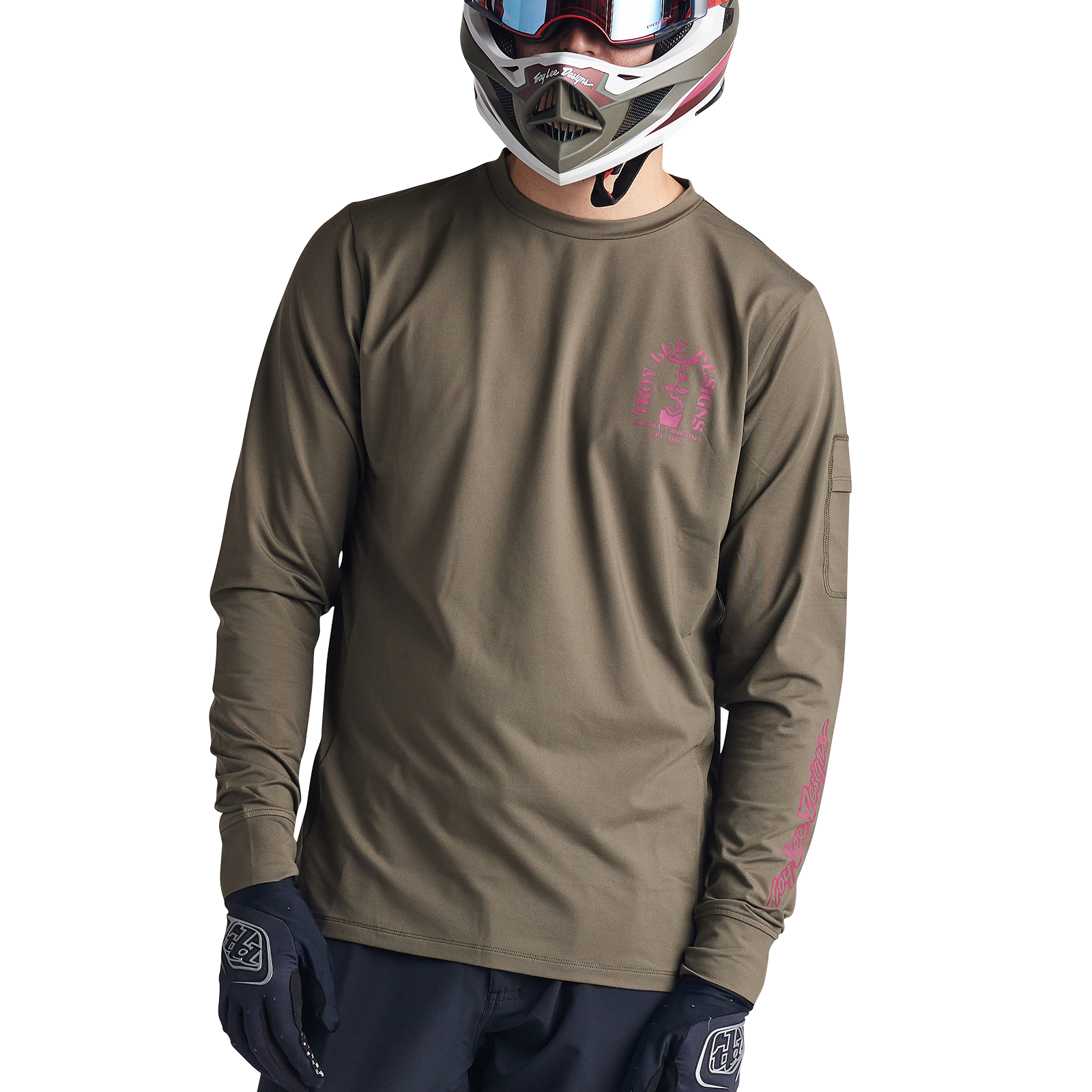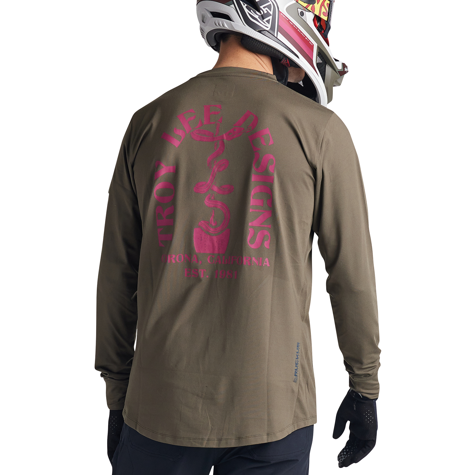 Troy Lee Designs Ruckus Long Sleeve Ride Tee - Bolts - Fangs - Olive